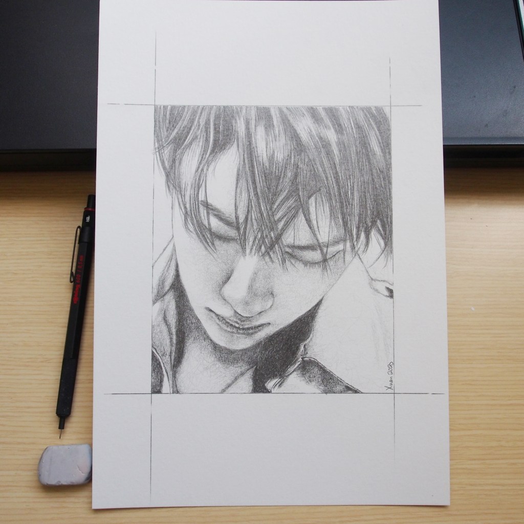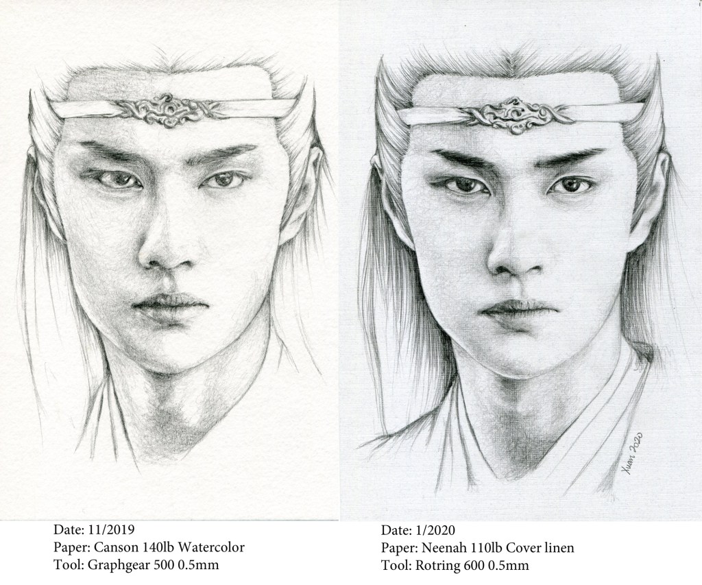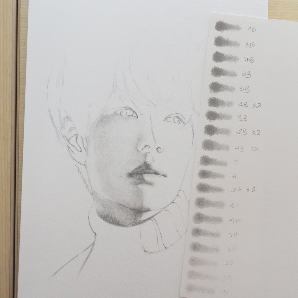 The picture I started out on Canson XL Watercolor paper, so it has a very rough surface which is great for my 0.5 mechanical pencil but not so much for these. The swatch was done on smooth 90lb drawing paper so it’s much easier to do. I would recommend that or smooth Bristol if you want smooth result and easy layering/blending. With the swatch, just pick and get that pencil out and start, then go darker. Try to fit the swatch sheet inside the box to make it easier. With this, start with the lighter one first, then layer on. This gives you so much range and shades to choose from. As always, I always start with the bottom of the face…so of course the mouth. I do like this set alot and fun to use. It does take a bit longer because you have to move from on pencil to the next but the result is quite nice.
