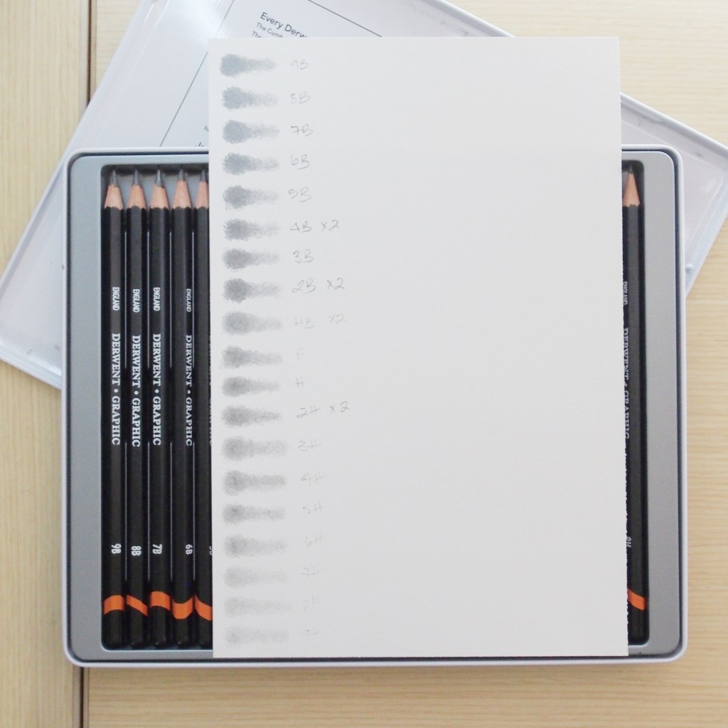 The B range are the darker ones but very soft while the H are lighter and the lead is hard. B goes on smooth and H is like scratching on paper. 4B, 3B, HB, 2H each have two. You honestly do not need all of them. Actually most people don’t even use all of them. I gave it a try to see what you can do with them.